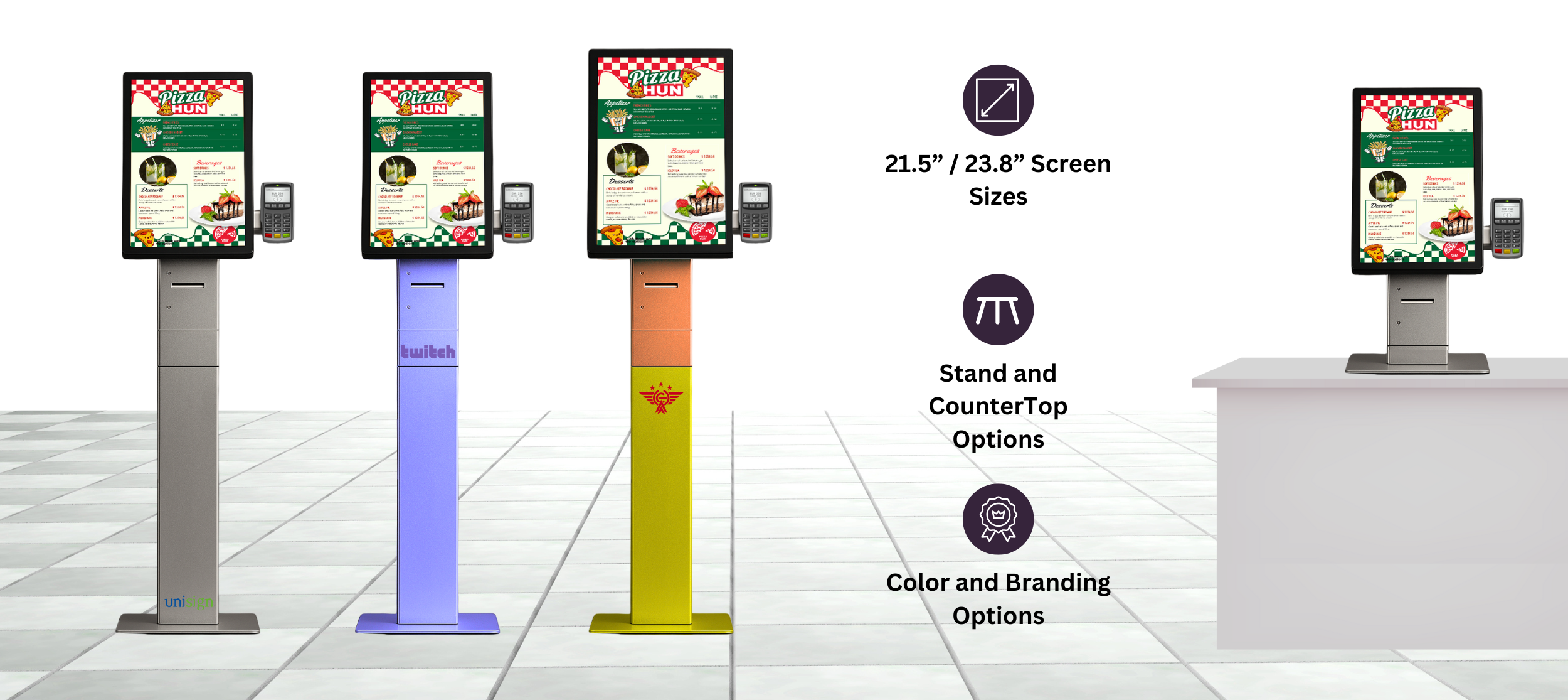 Rize is a sleek, compact self-order kiosk designed to fit any space. Its robust black metal body can be customized with your branding and colors, making it a perfect addition to your environment while simplifying ordering and payment processes.