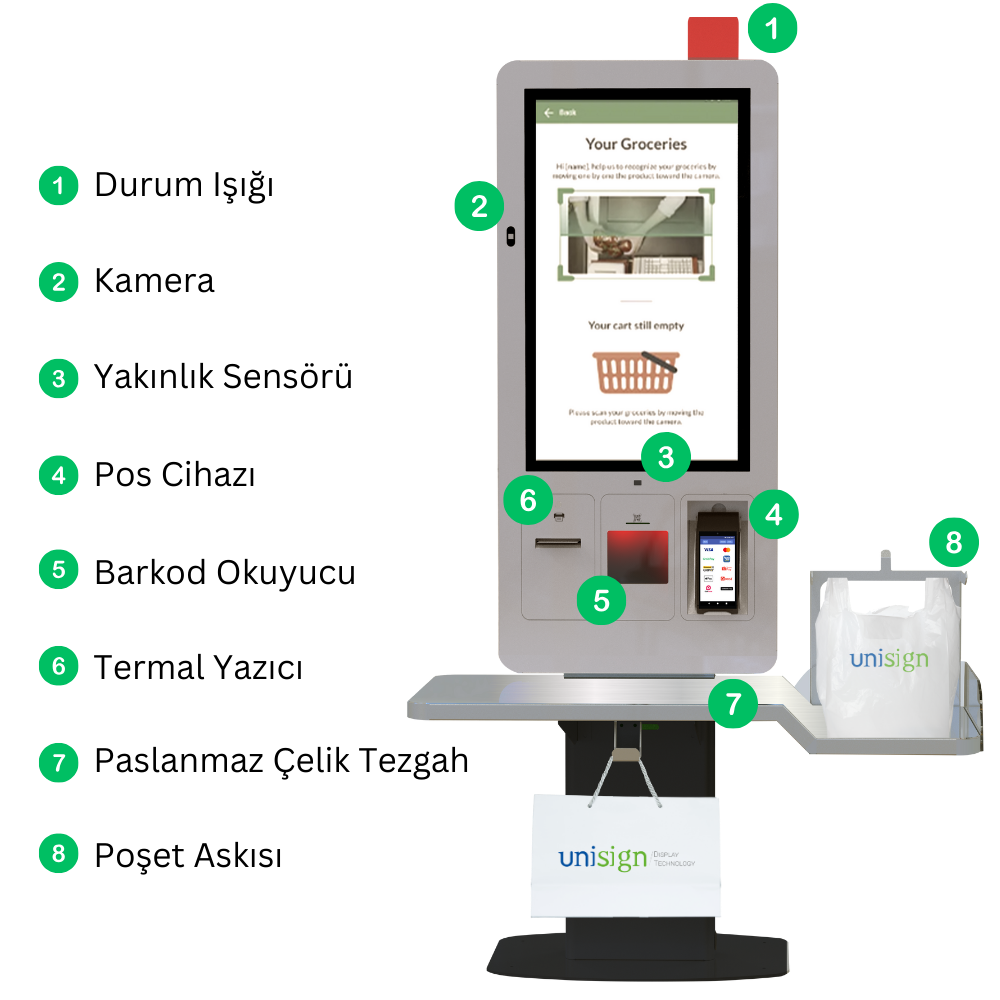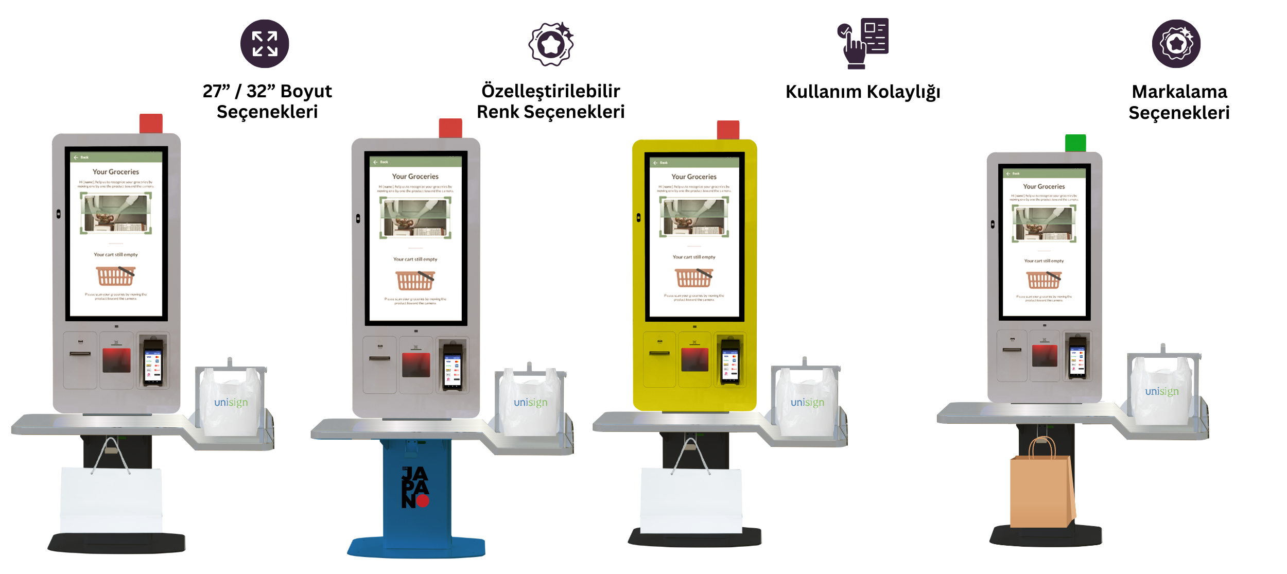 Samsun Self Checkout, Self Order Kioskumuzun ileri teknolojisini sorunsuz self-checkout için gereken işlevsellikle birleştirir. Özelleştirilebilir masa seçenekleri, ergonomik tasarımı ve sağlam donanımı, süpermarketler ve perakende ortamları için olmazsa olmaz bir üründür.